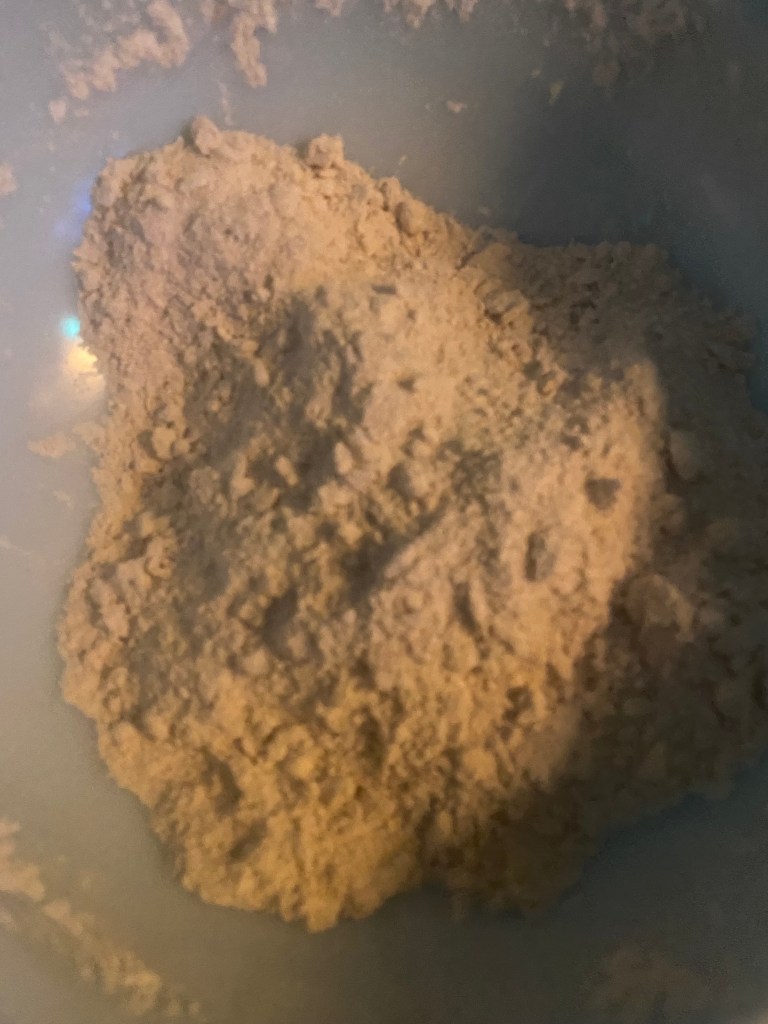 6. Turn the dough out onto a lightly floured surface and knead gently a few times until it comes together. Pat the dough into a circle about 1-inch thick.