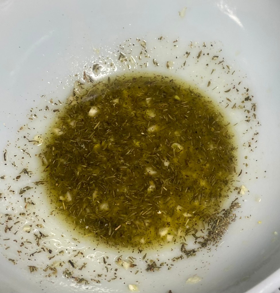 1. Preheat your oven to 425°F (220°C). In a large bowl, combine the olive oil, minced garlic, lemon zest, lemon juice, thyme, oregano, salt, and pepper to create a marinade.
