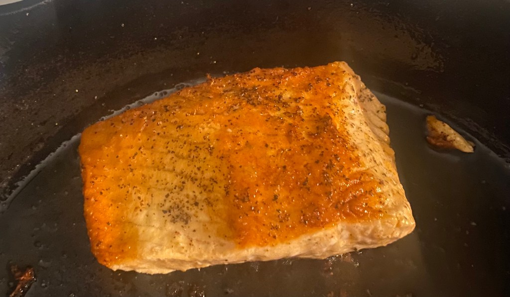 4. Carefully flip the salmon and cook for another 3-4 minutes, or until the salmon is cooked through.