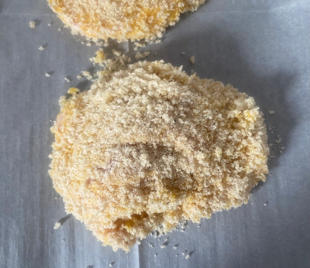 6. Bake in the preheated oven for about 30-35 minutes, or until the chicken is cooked through and the panko coating is golden brown and crispy.