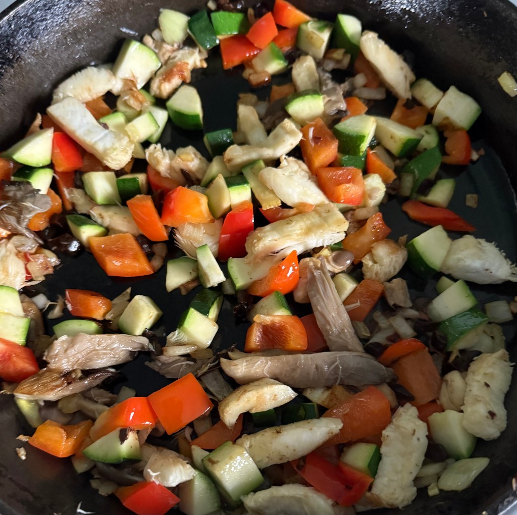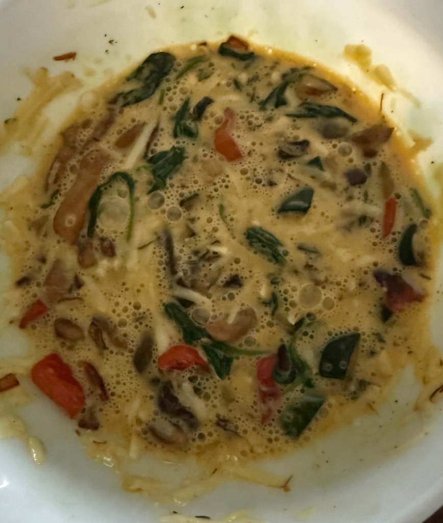 - 1 cup cooked vegetables (such as spinach, bell peppers, mushrooms, or zucchini)