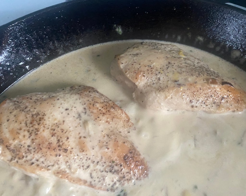6. Return the cooked chicken to the skillet, spooning the sauce over the top. Cook for another 2 minutes to heat through.