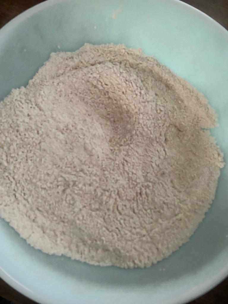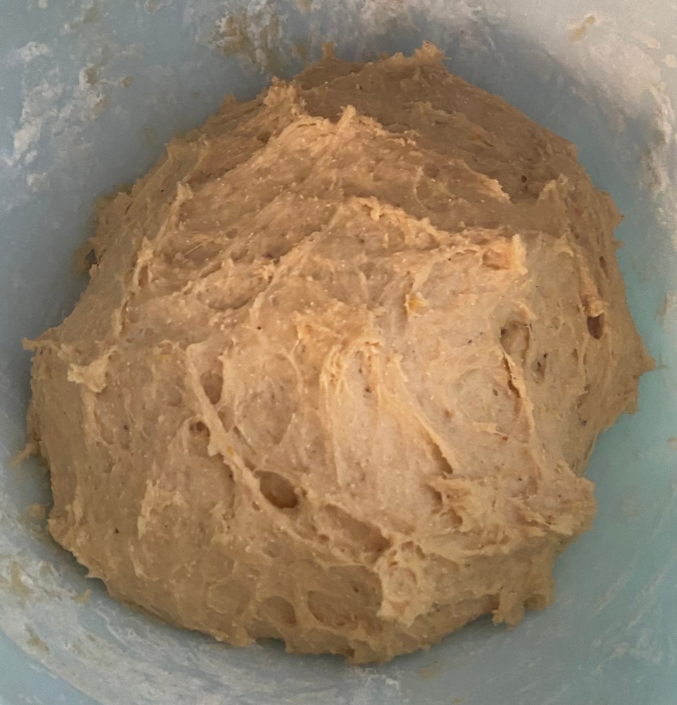 3. Pour the wet ingredients into the dry ingredients and mix until a dough forms. Gradually add the remaining flour, 1/4 cup at a time, until the dough is soft and slightly sticky.