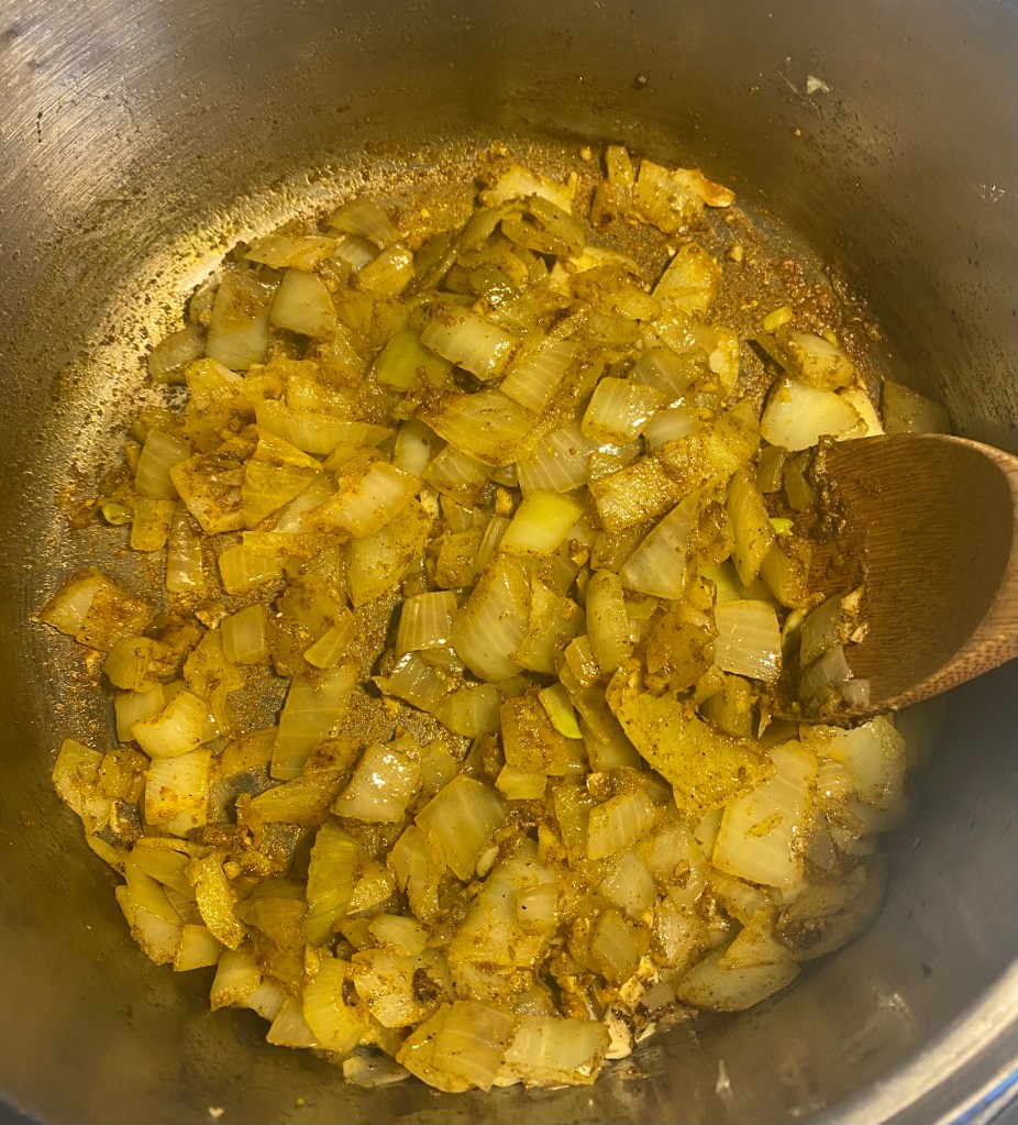 3. Add the curry powder, ground cumin, turmeric, and chili powder (if using), stirring to coat the onions and release the spices’ aromas.
