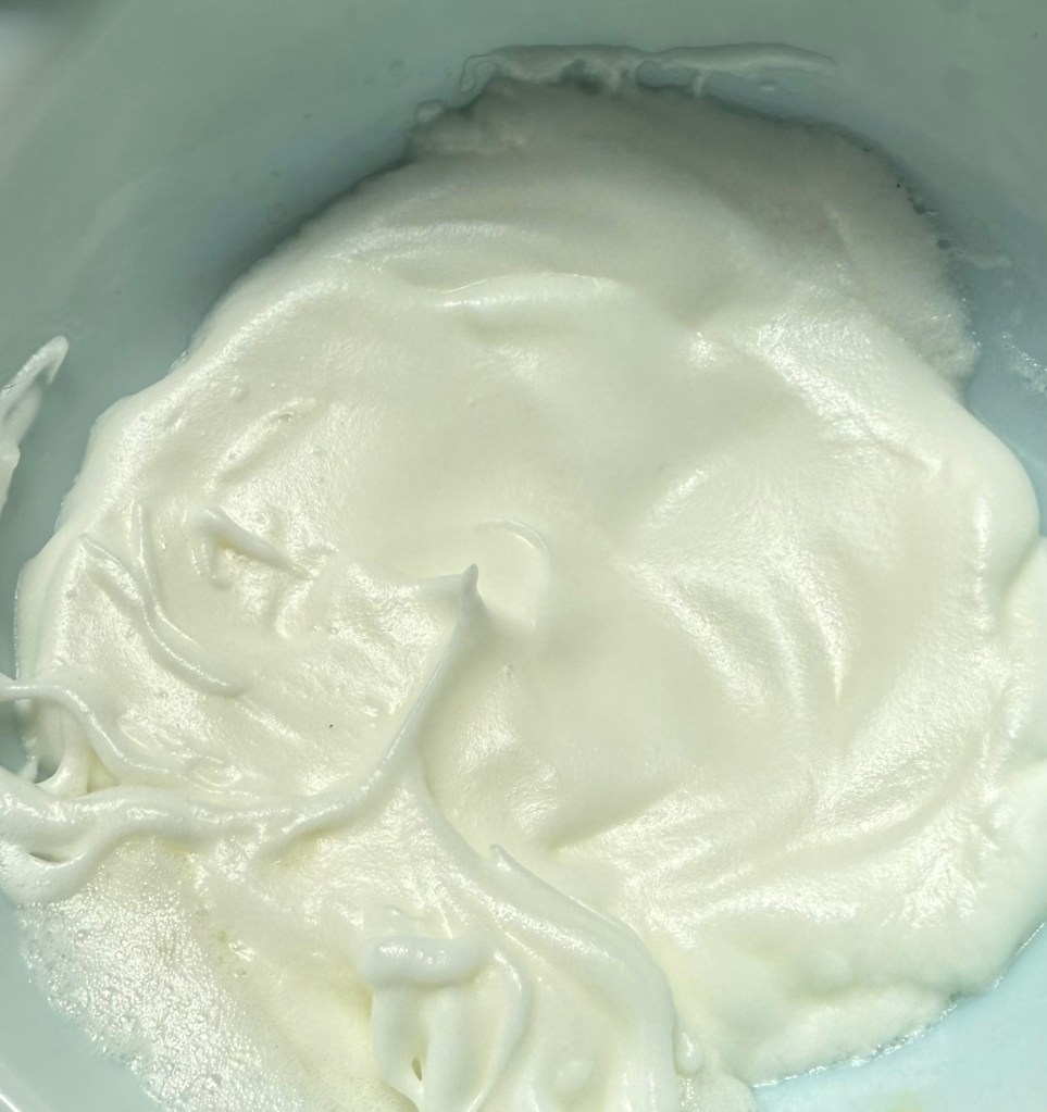 3. In a separate bowl, whip the egg whites until soft peaks form. This usually takes about 2-3 minutes with an electric mixer.