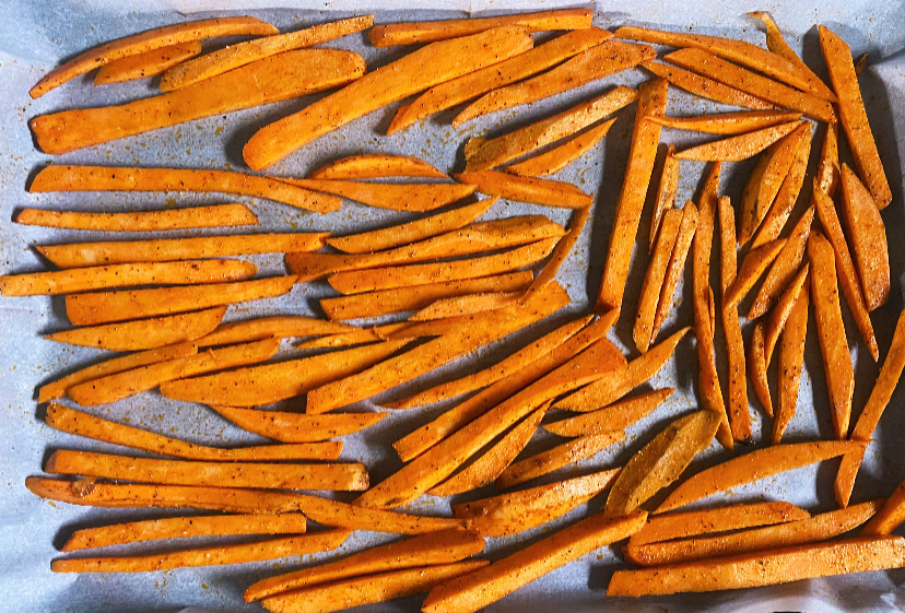 3. Spread the fries in a single layer on the prepared baking sheet, making sure they are not overcrowded to ensure crispiness.