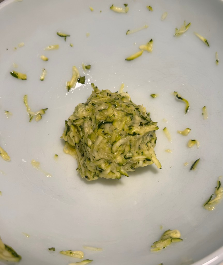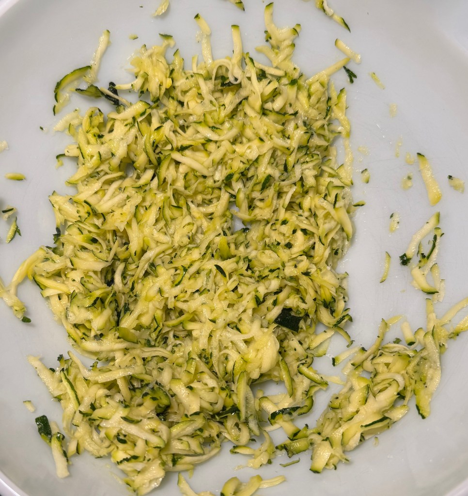 1. Place the grated zucchini in a clean kitchen towel or cheesecloth and sprinkle with salt. Let it sit for about 10 minutes to draw out excess moisture, then wring out the towel to remove as much liquid as possible.