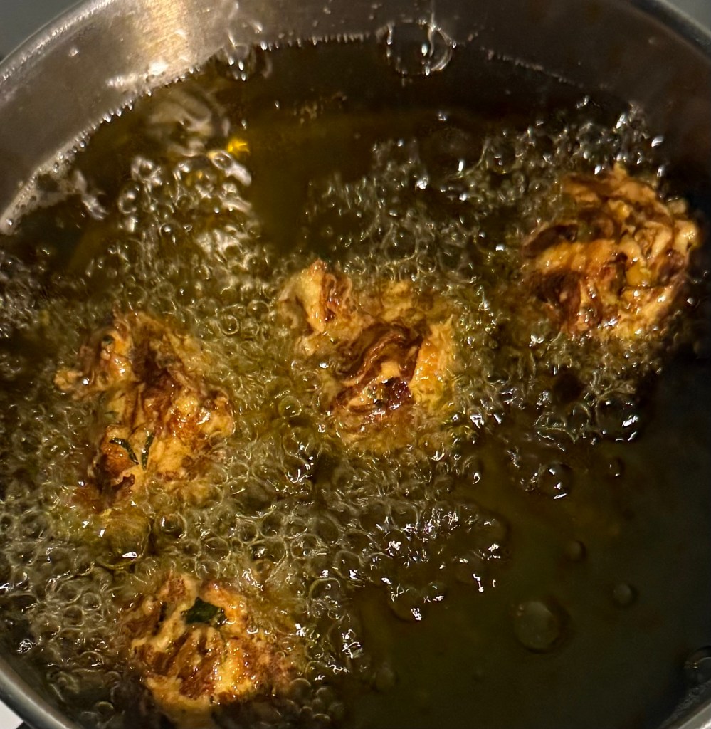 4. Fry the fritters for 3-4 minutes on each side, or until golden brown and crispy. Remove and drain on paper towels.