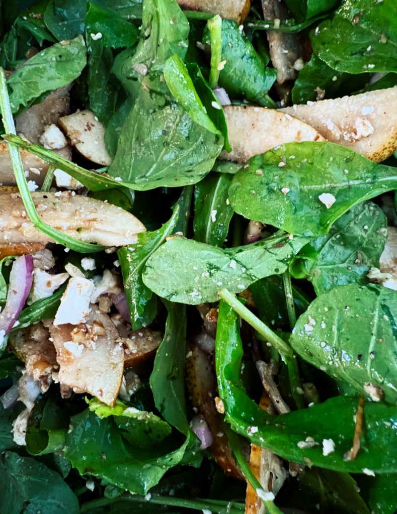 5. Enjoy this delicious arugula and pear salad as a refreshing and elegant addition to your meal!