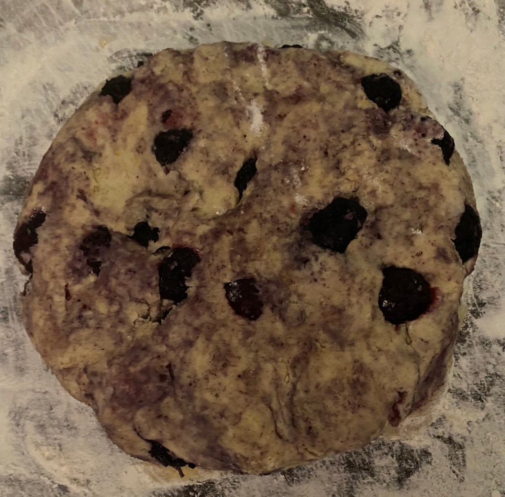 5. Gently fold in the blackberries, being careful not to overmix the dough.