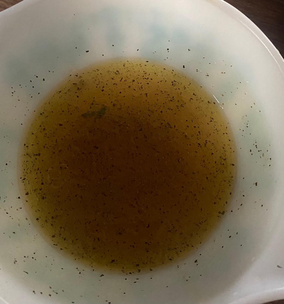 2. In a separate small bowl, whisk together the vinegar, olive oil, sugar or honey (if using), salt, and pepper until well combined.