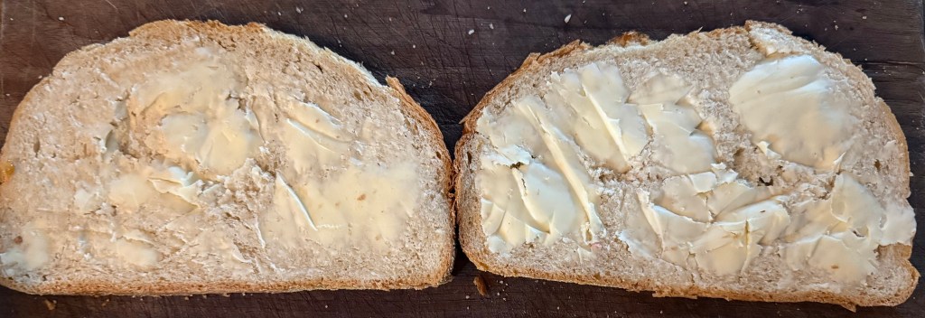 4. Top with the remaining slices of bread, buttered side facing out, to form sandwiches.