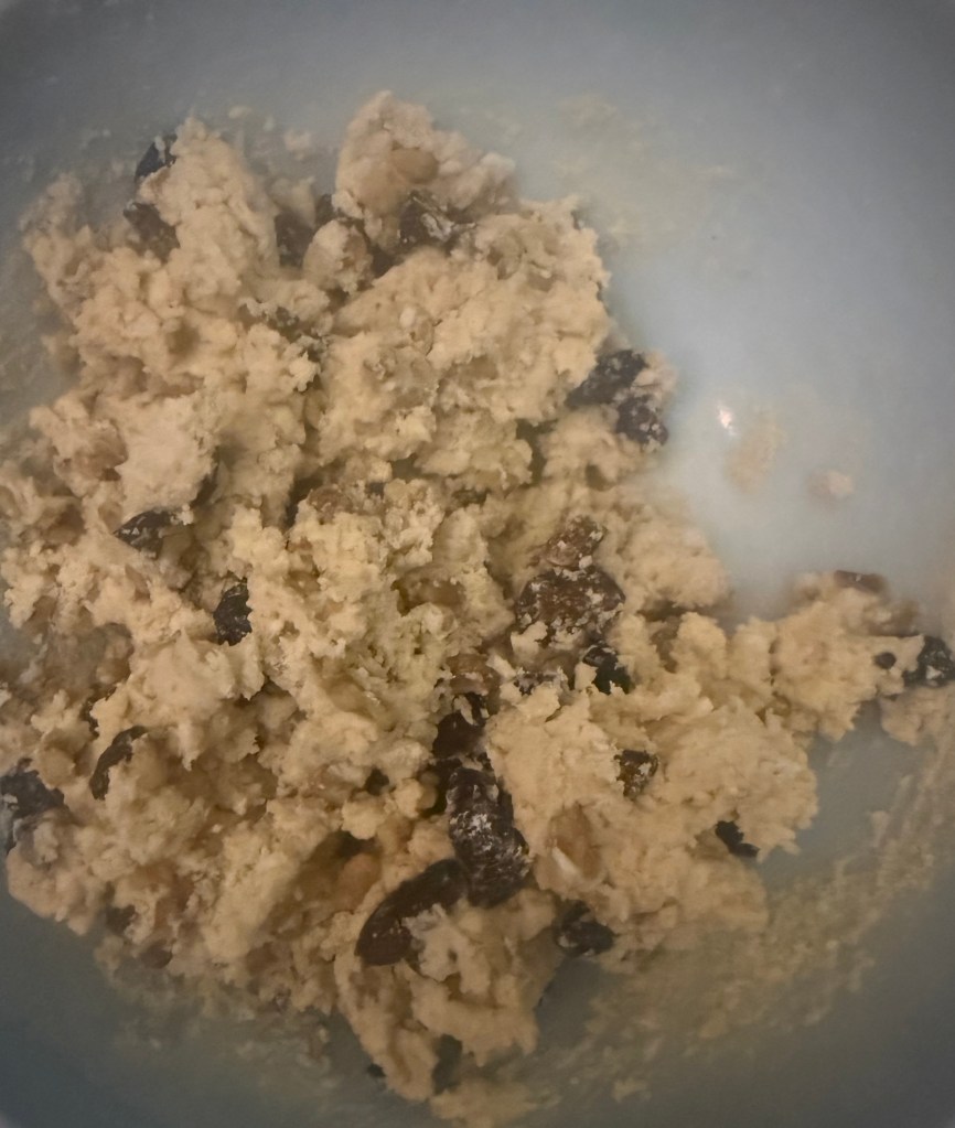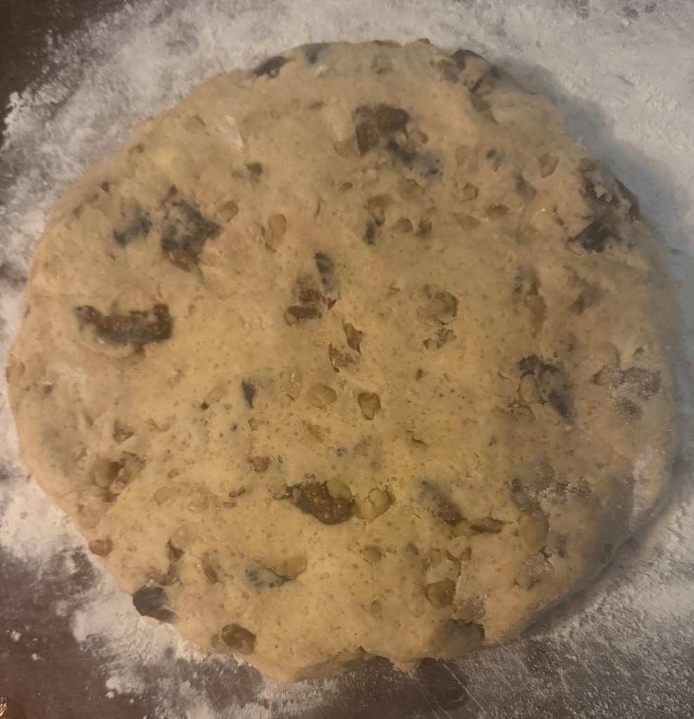 5. Gently fold in the chopped figs and walnuts, being careful not to overmix the dough.