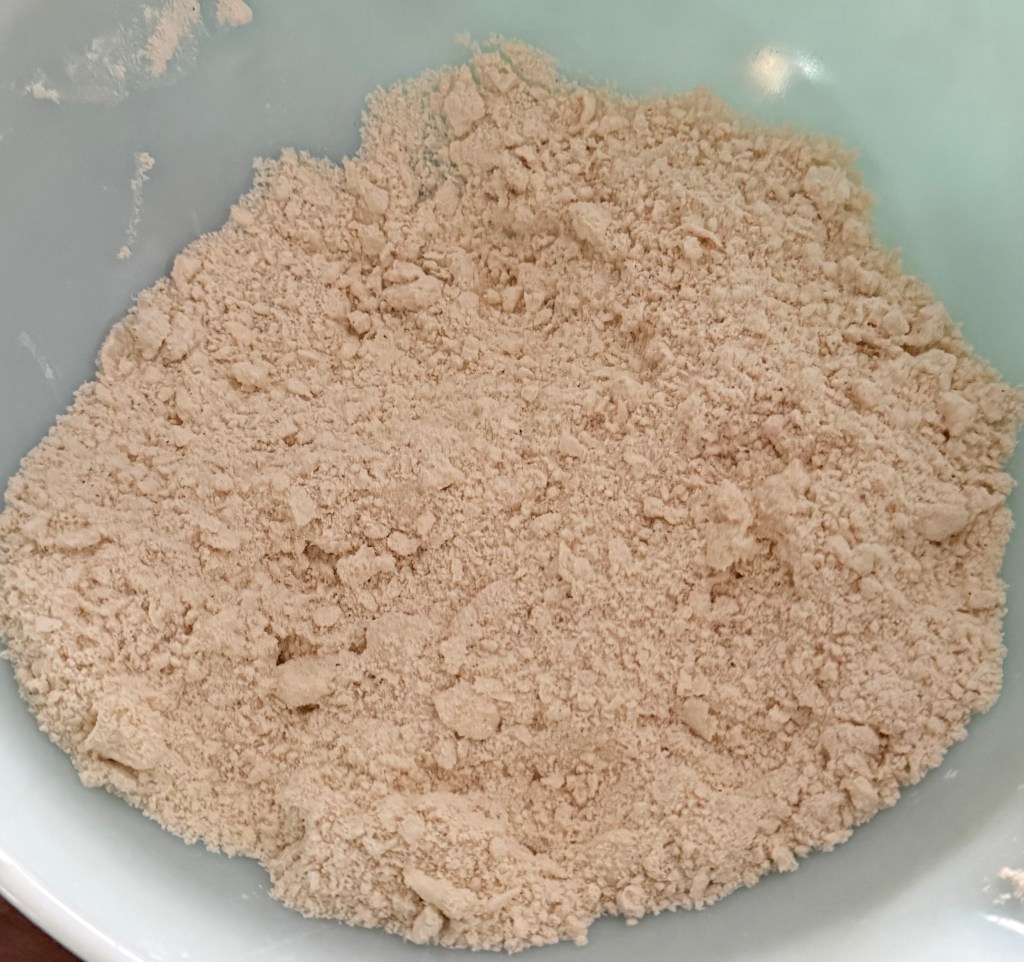 3. Add the cold, cubed butter to the flour mixture and use a pastry cutter or your fingers to blend until the mixture resembles coarse crumbs.