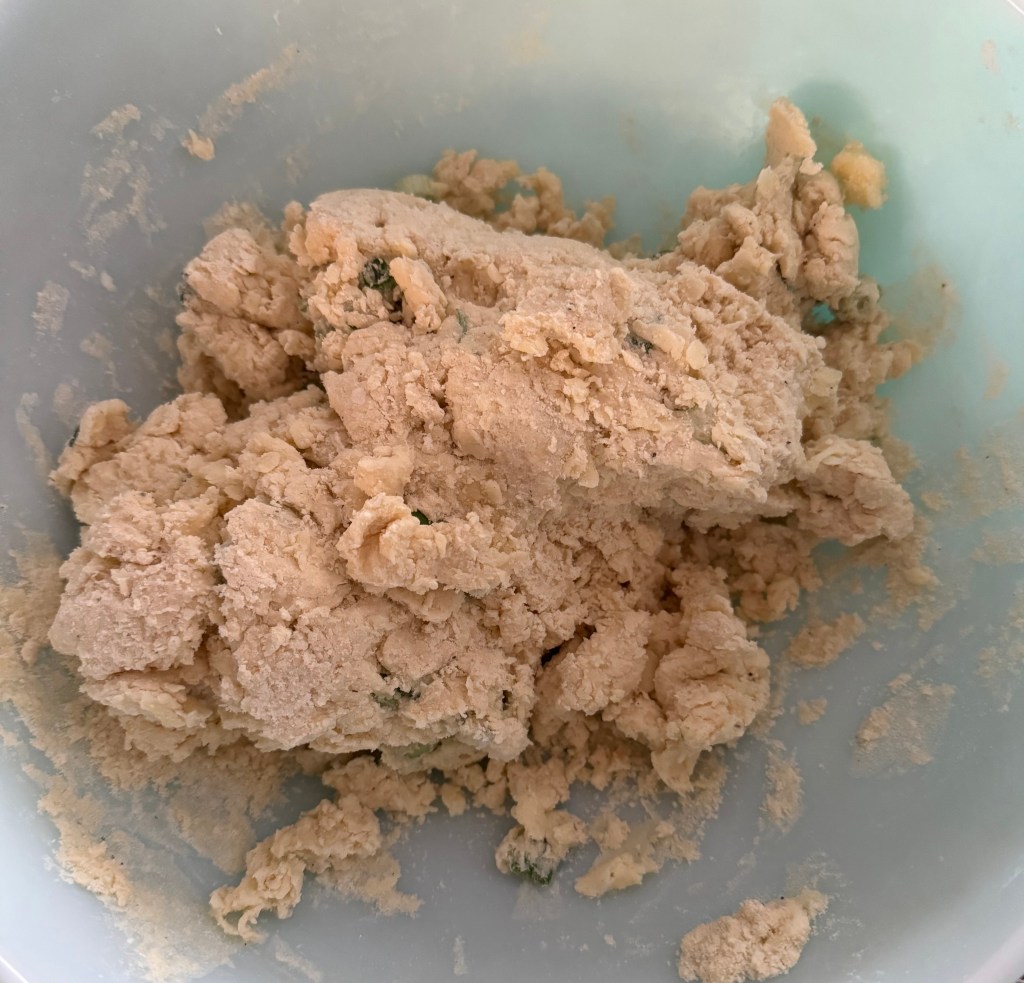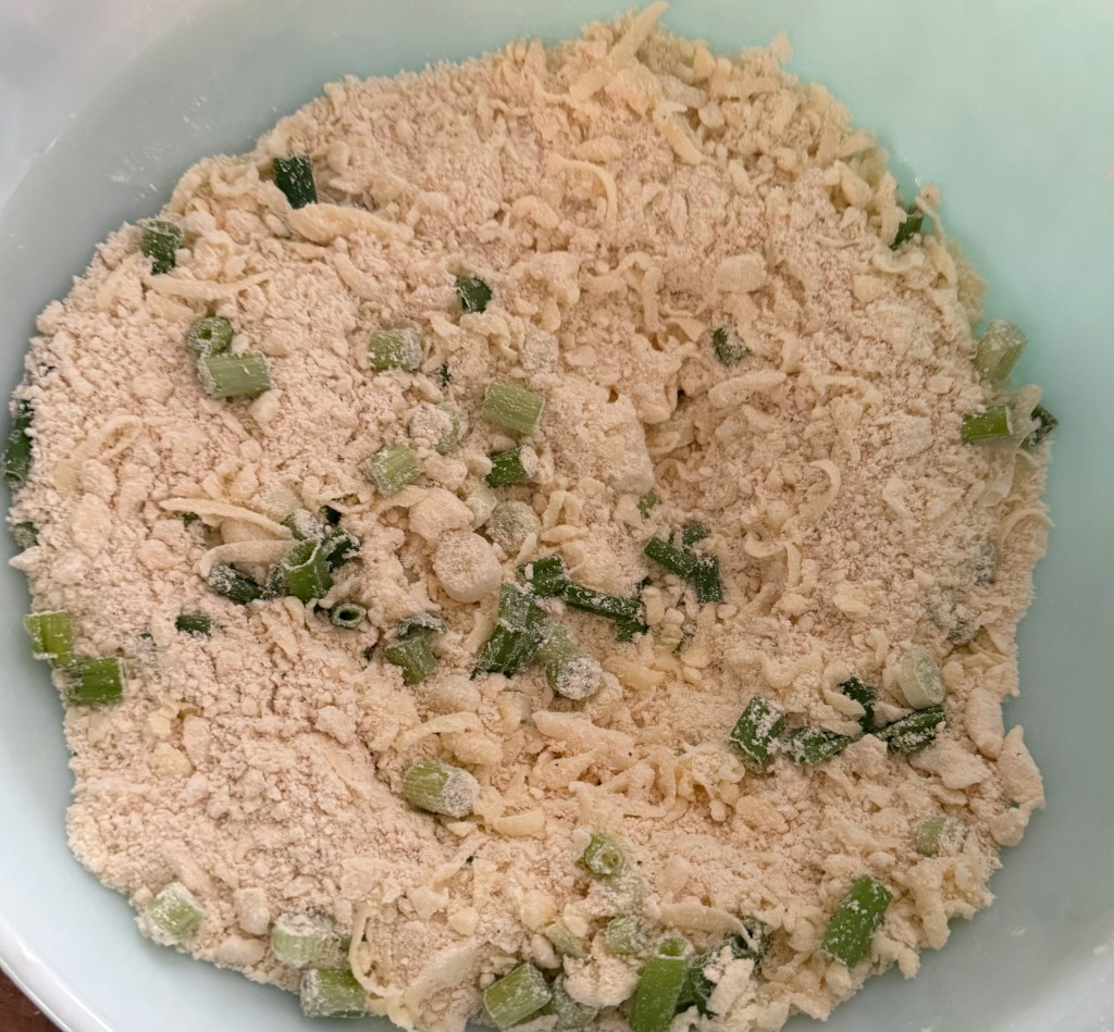 4. Gently fold in the shredded cheese and chopped green onions until evenly distributed.
