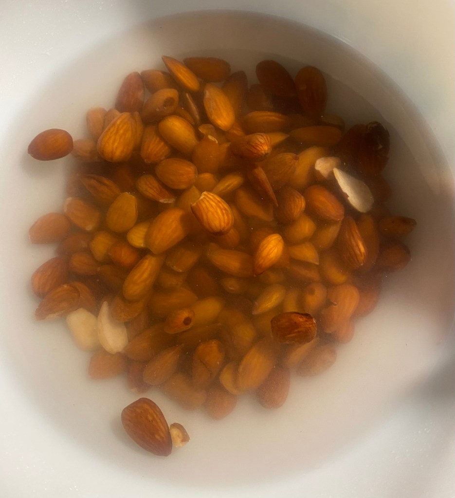 1. Soak the raw almonds in a bowl of water for at least 8 hours or overnight. Drain and rinse the almonds after soaking.