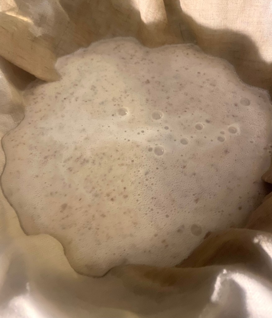4. Squeeze the bag or cloth to extract as much almond milk as possible, leaving the almond pulp behind.