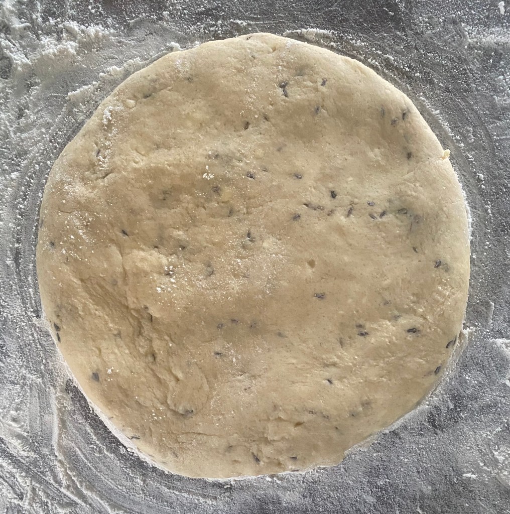 5. Gently fold in the dried lavender, being careful not to overmix the dough.