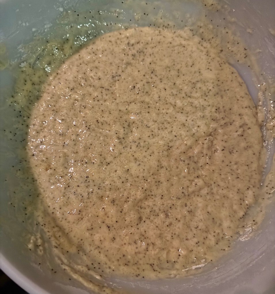 2. In a large mixing bowl, whisk together the flour, granulated sugar, poppy seeds, baking powder, salt, and baking soda.
