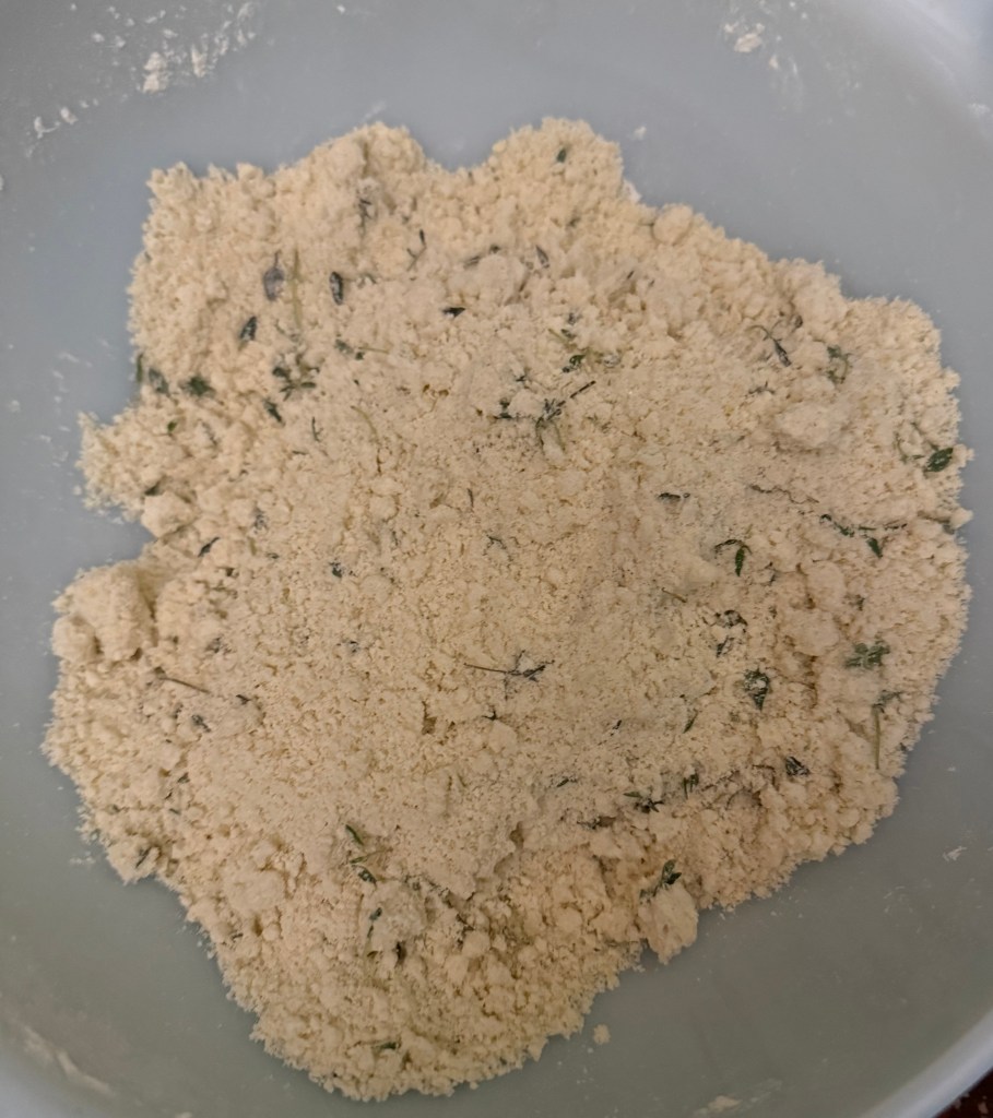 2. In a large mixing bowl, whisk together the flour, sugar, baking powder, salt, thyme, and lemon zest.