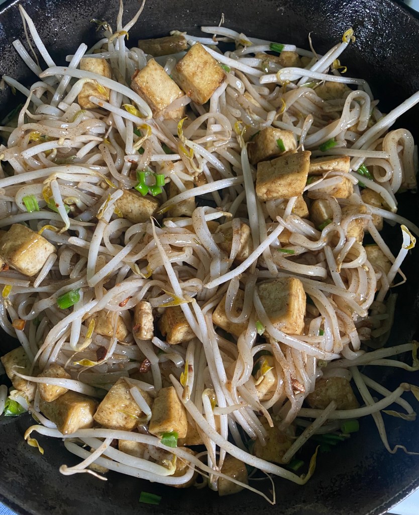 7. Gently fold in the bean sprouts and green onions, cooking for an additional 1-2 minutes.