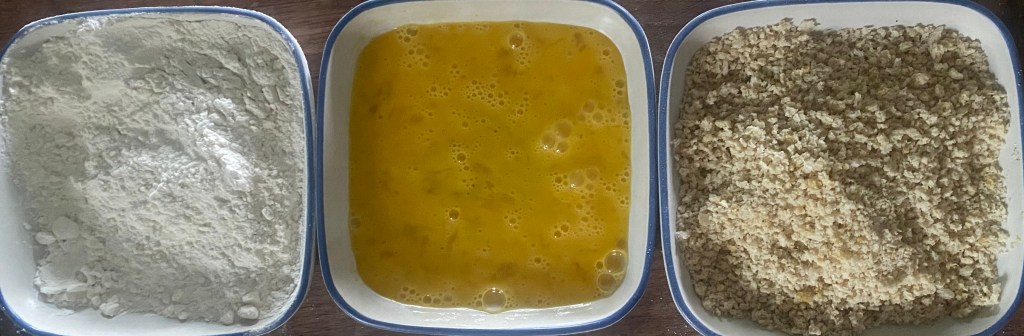 2. In a shallow bowl, place the flour. In another bowl, place the beaten eggs. In a third bowl, mix the panko breadcrumbs with garlic powder, onion powder, lemon zest (if using), salt, and pepper.