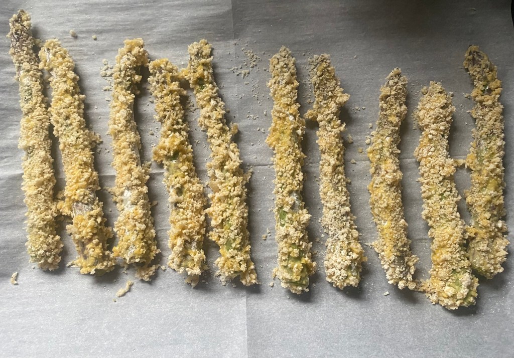 9. Enjoy this delicious panko-crusted asparagus as a crunchy and flavorful side dish that complements any meal!