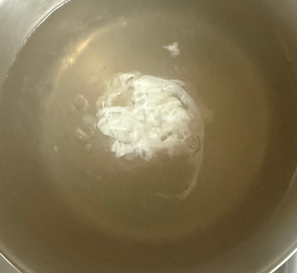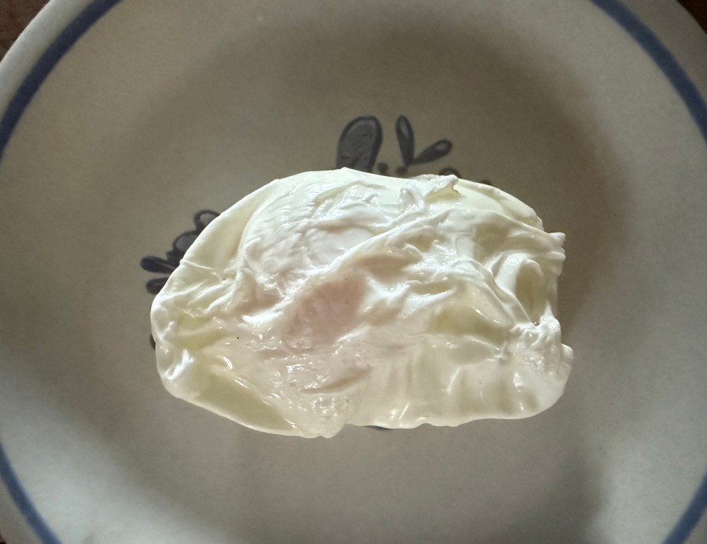 5. Using a slotted spoon, gently lift the poached egg out of the water and place it on a paper towel to drain any excess water.