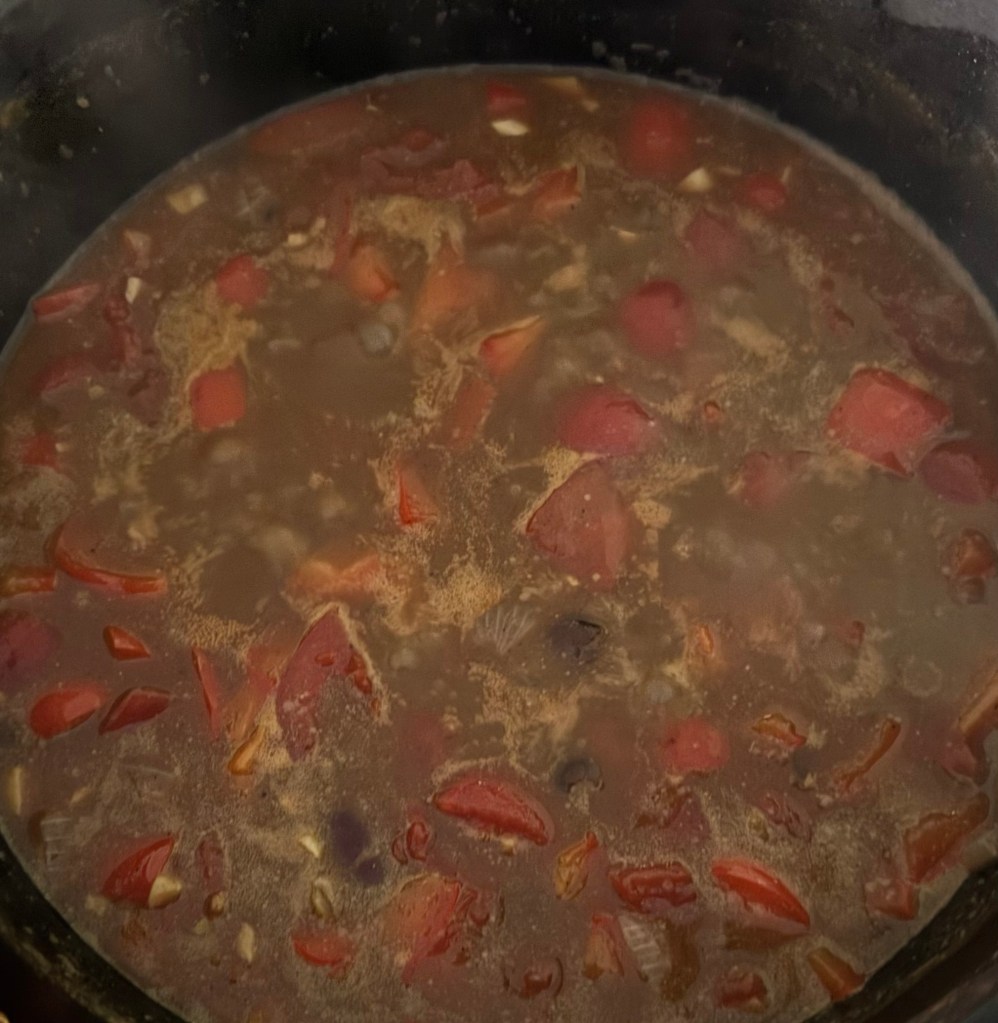 5. Bring the mixture to a simmer, then reduce the heat to low. Cover and let it cook for about 20-30 minutes, stirring occasionally.