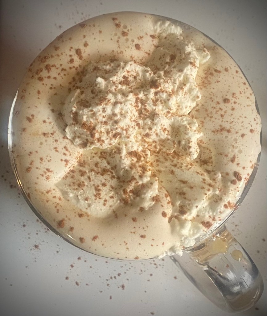 5. Top with whipped cream if desired, and sprinkle with additional cinnamon or nutmeg for garnish.