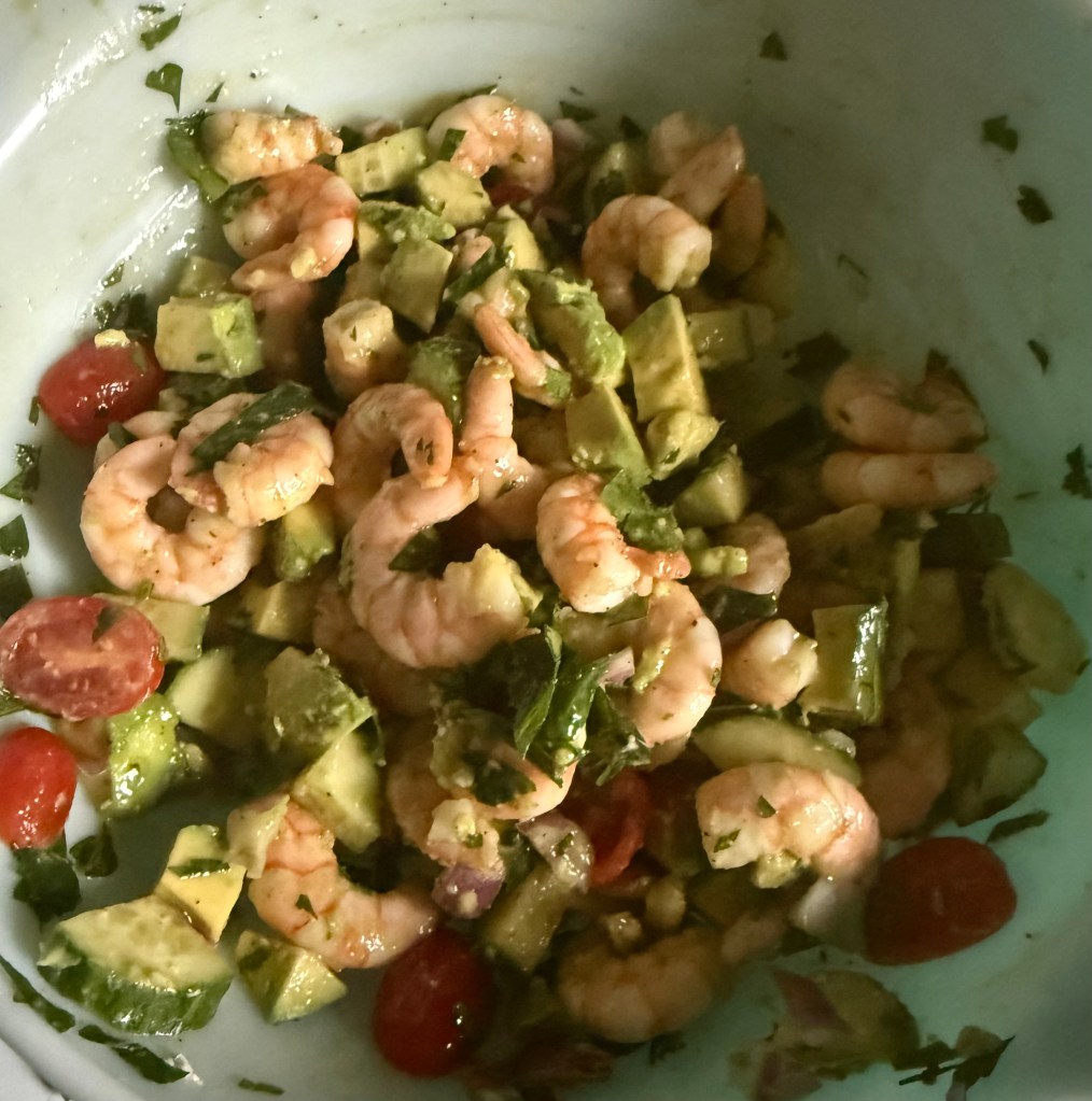 6. Serve immediately and enjoy this delicious shrimp and avocado salad as a refreshing and nutritious addition to your meal!