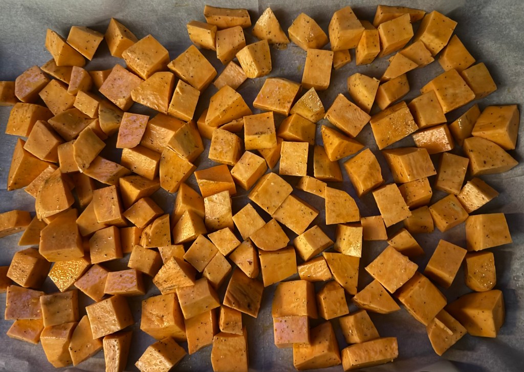- 2 large sweet potatoes, peeled and diced