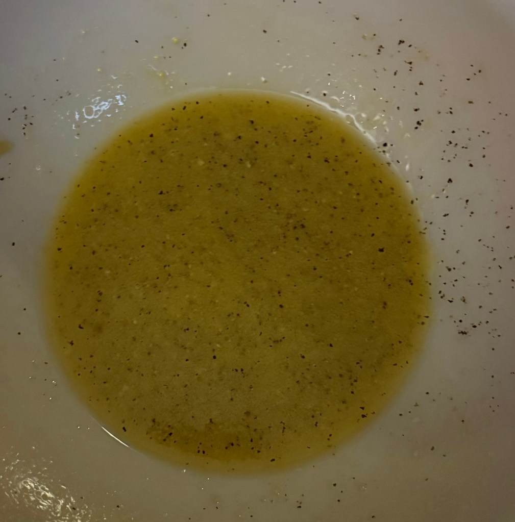 3. In a separate small bowl, whisk together the olive oil, apple cider vinegar, Dijon mustard, honey or maple syrup, salt, and pepper until well combined.