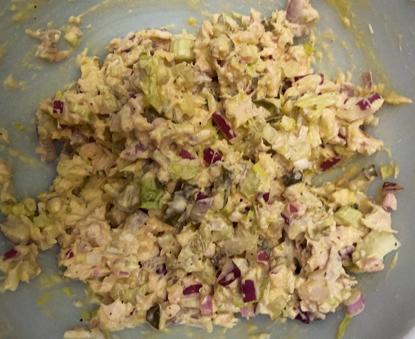 3. Adjust the seasoning and dressing to your liking, adding more mayonnaise or mustard if desired.