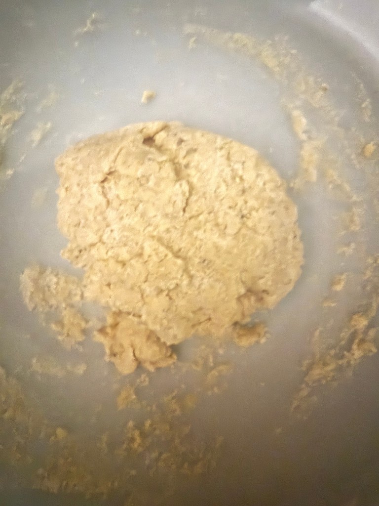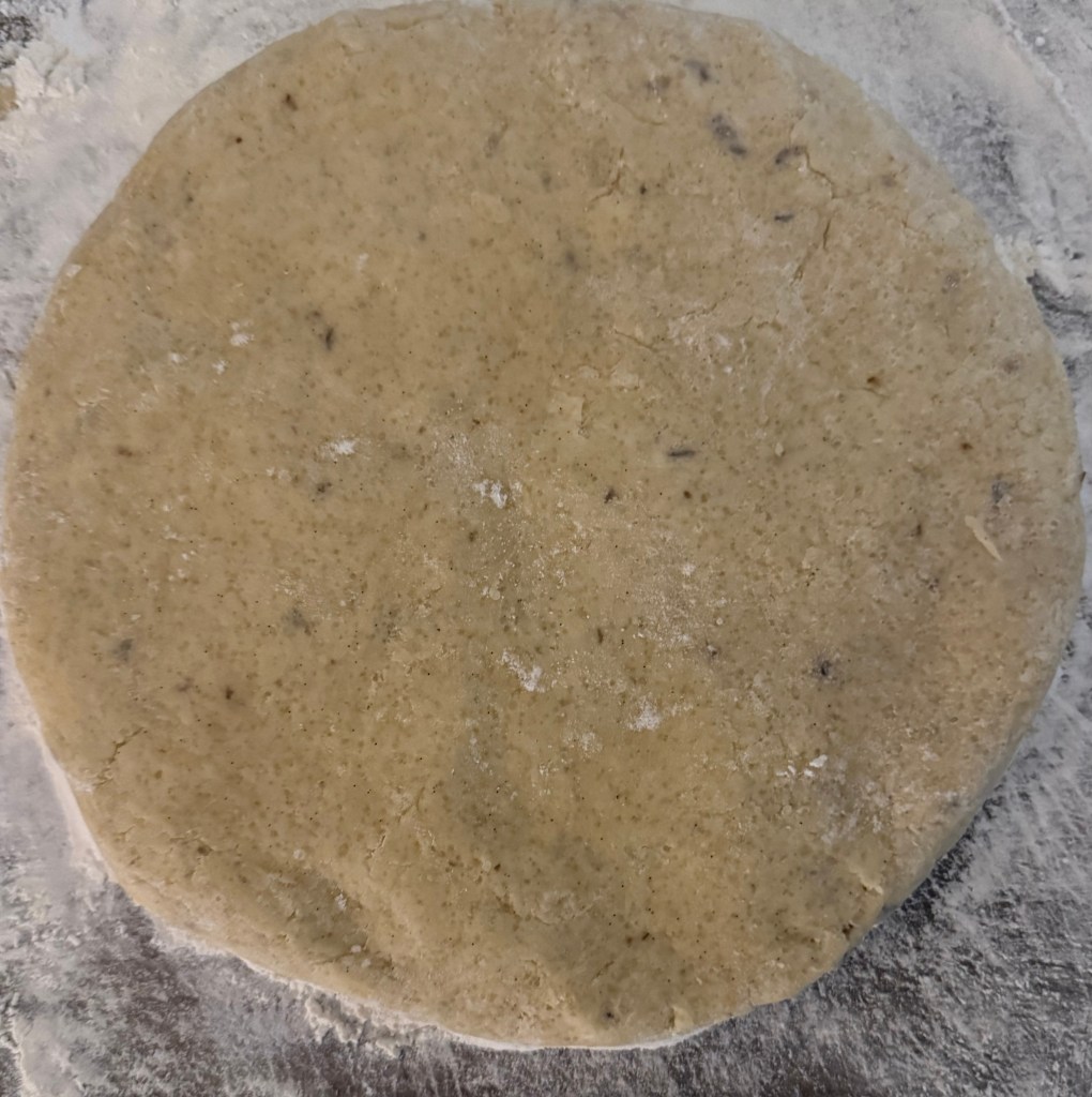 5. Turn the dough out onto a lightly floured surface and knead gently a few times until it comes together. Pat the dough into a circle about 1-inch thick.