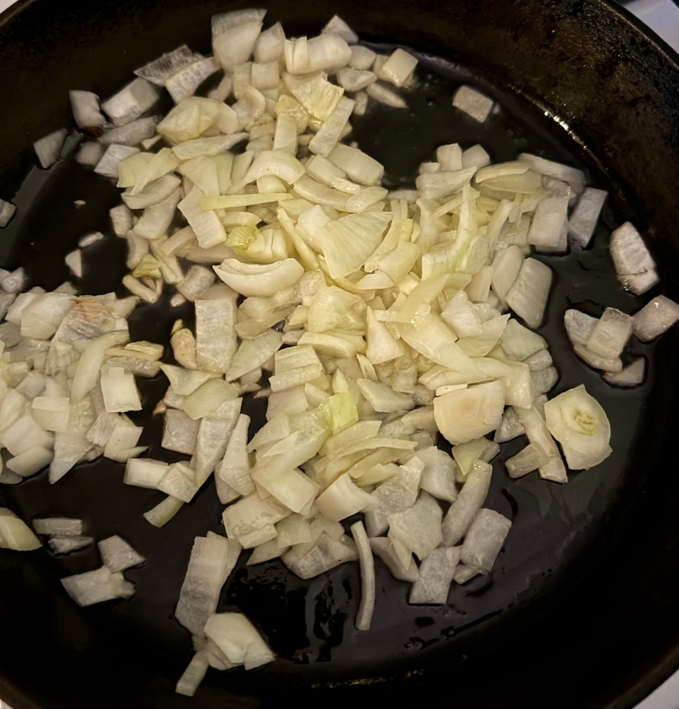 1. In a large skillet, heat the olive oil over medium heat. Add the chopped onion and sauté until translucent, about 5 minutes.
