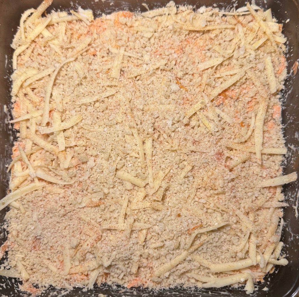 3. Transfer the carrot mixture to the prepared baking dish, spreading it evenly.
