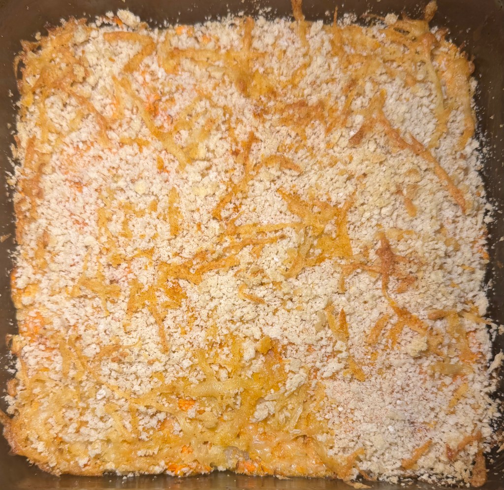 6. Remove from the oven and let it cool slightly before serving. Enjoy this flavorful and comforting carrot casserole as a delightful addition to your meal!