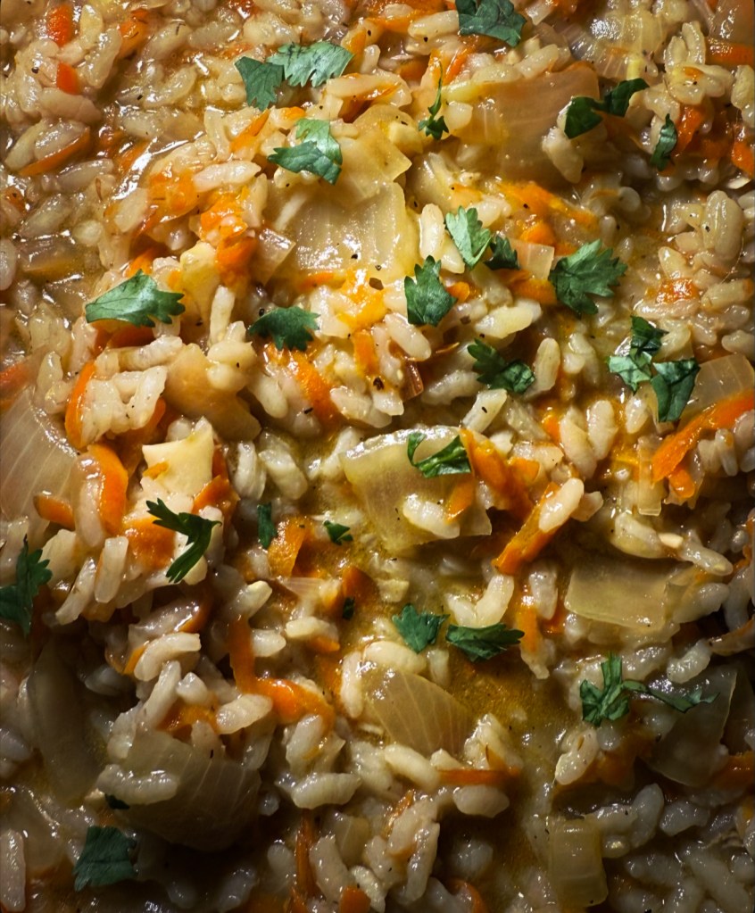 8. Serve the carrot risotto warm, garnished with fresh parsley. Enjoy this delightful and comforting dish as a nourishing part of your meal!