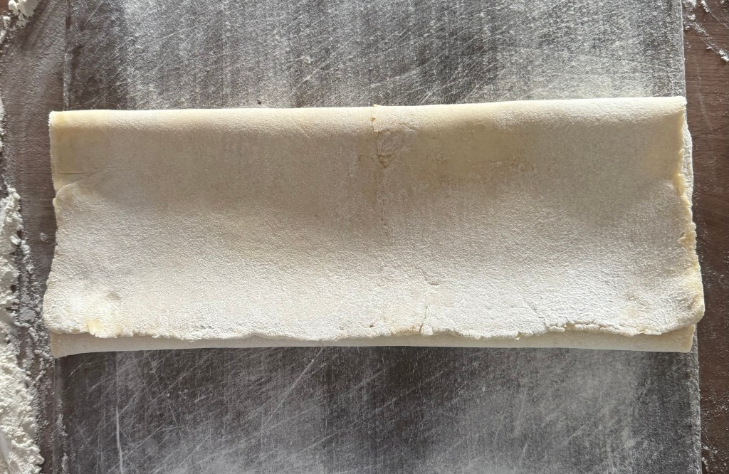 - Fold into a letter shape and roll into large rectangle. Repeat this step two more times