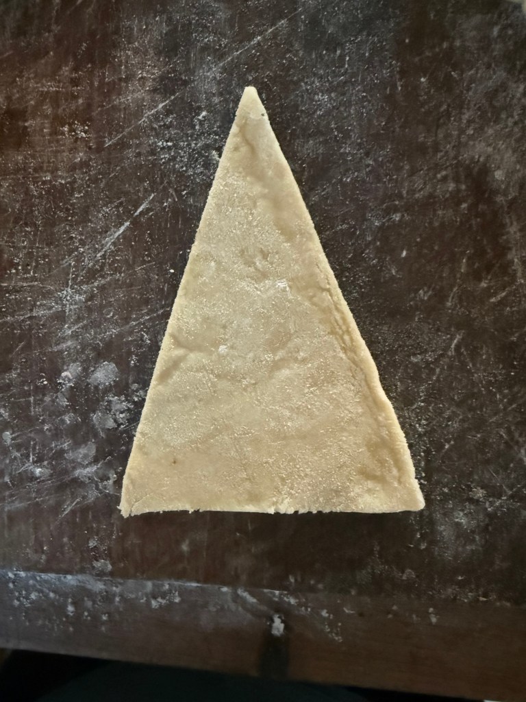 - Cut rolled out puff pastry into triangles.