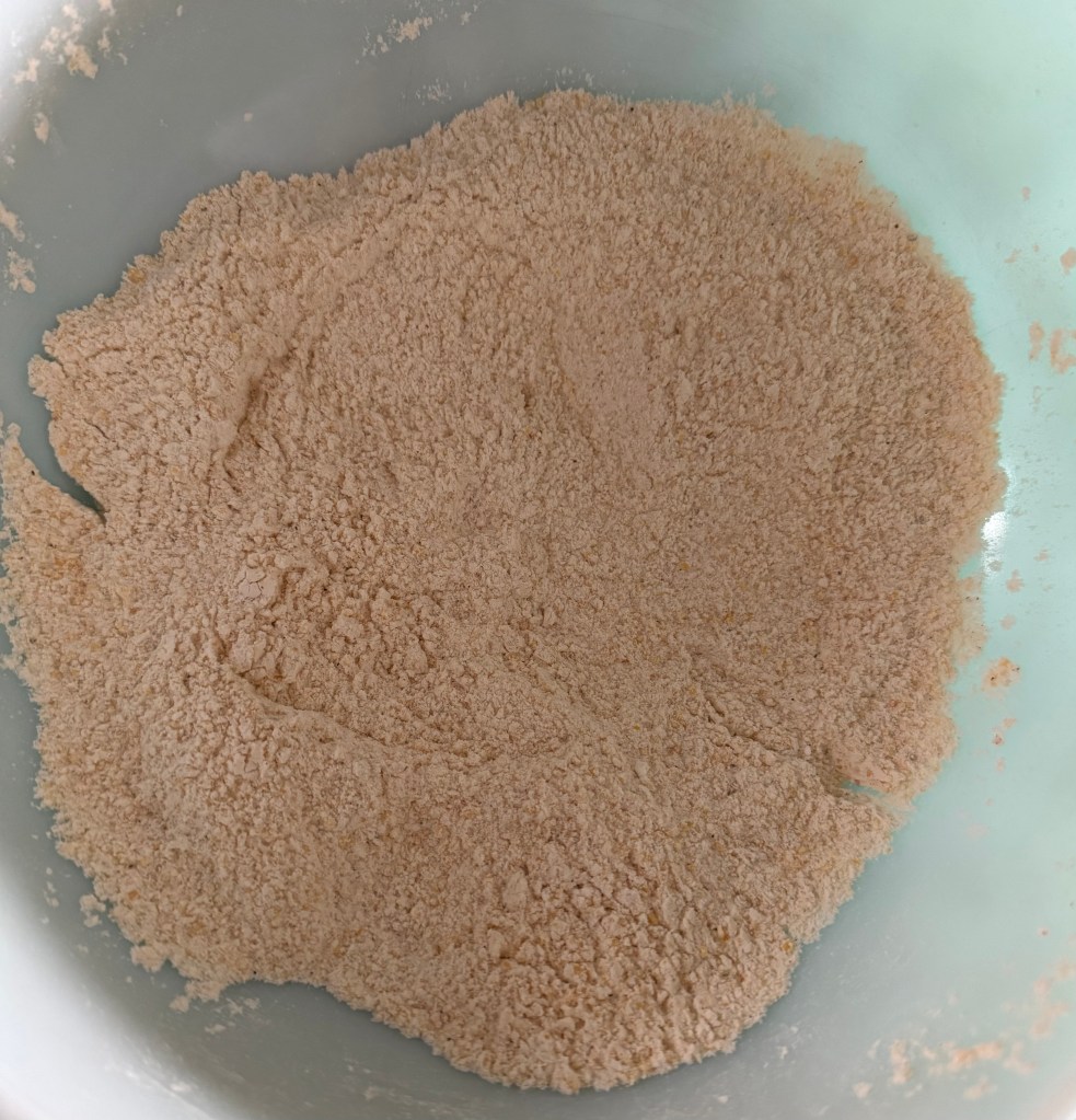 2. In a separate bowl, whisk together the milk and beaten egg. Pour the wet ingredients into the dry ingredients and mix until just combined.