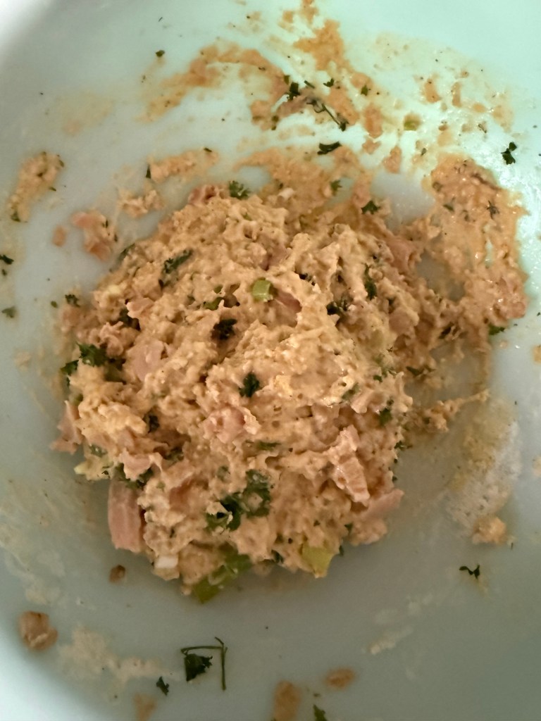3. Fold in the chopped clams, green onions, and parsley until evenly distributed.