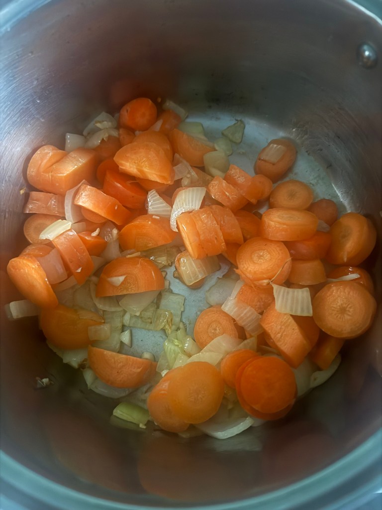 3. Stir in the chopped carrots and ground cumin (if using), and cook for another 2-3 minutes.