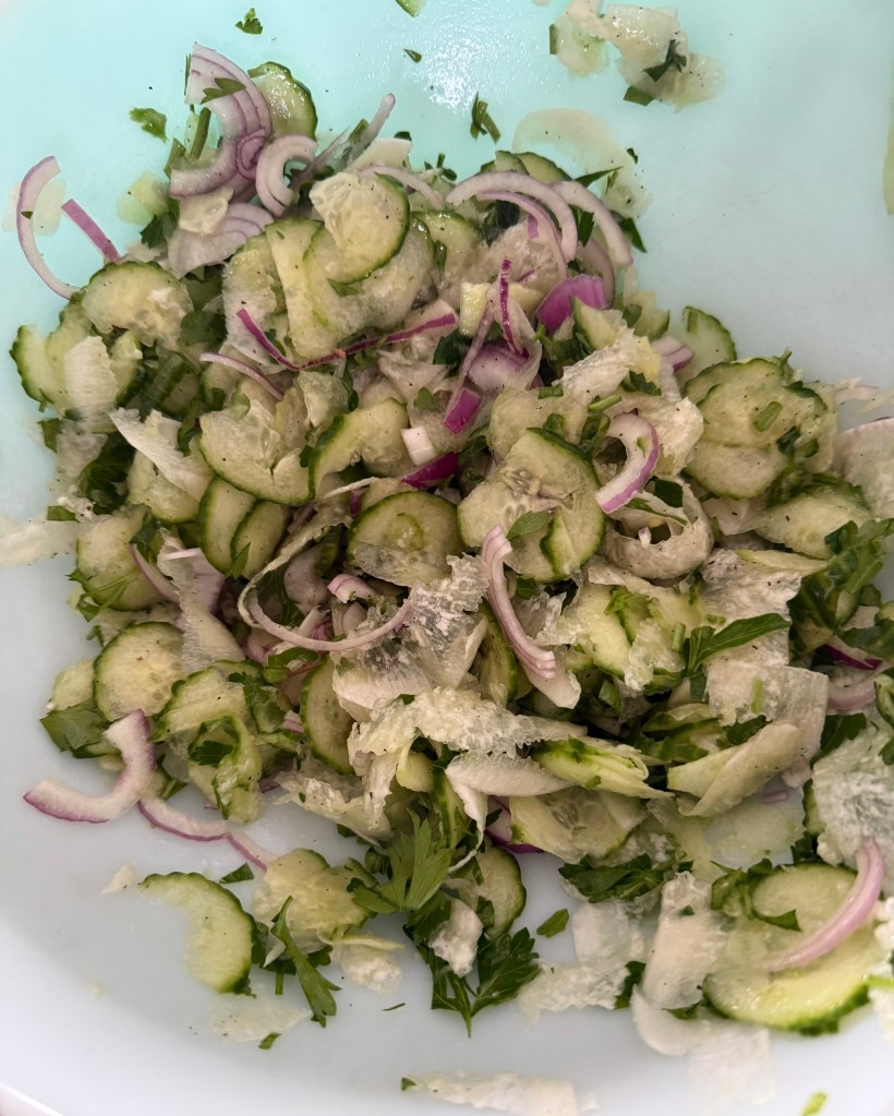 - 2 large cucumbers, thinly sliced