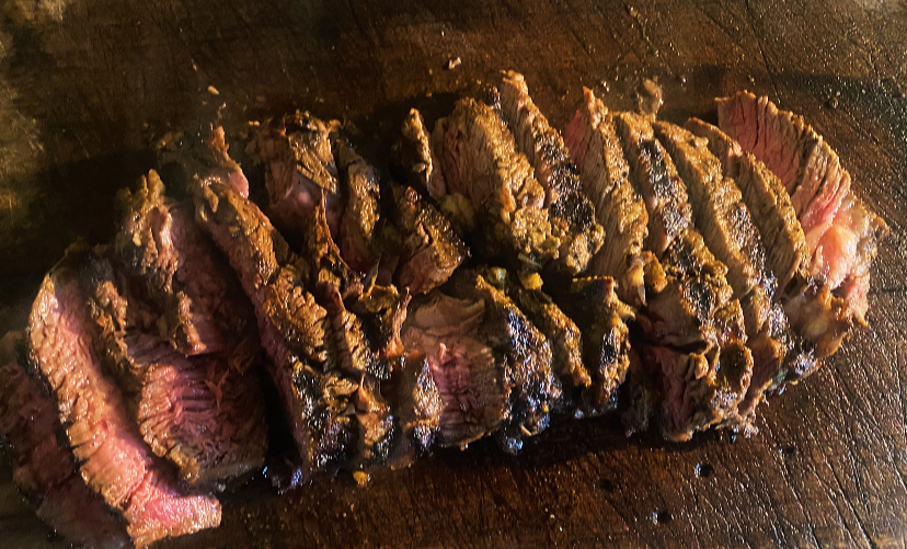 6. Once cooked, let the steak rest for 5 minutes before slicing it against the grain into thin strips.