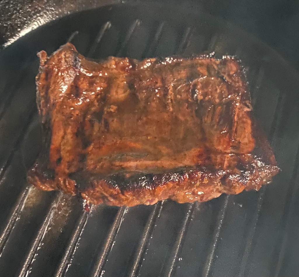 5. Remove the skirt steak from the marinade and discard the marinade.