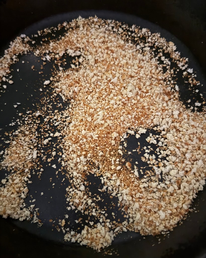 5. Once the panko is toasted, let it cool slightly before adding it to the slaw.