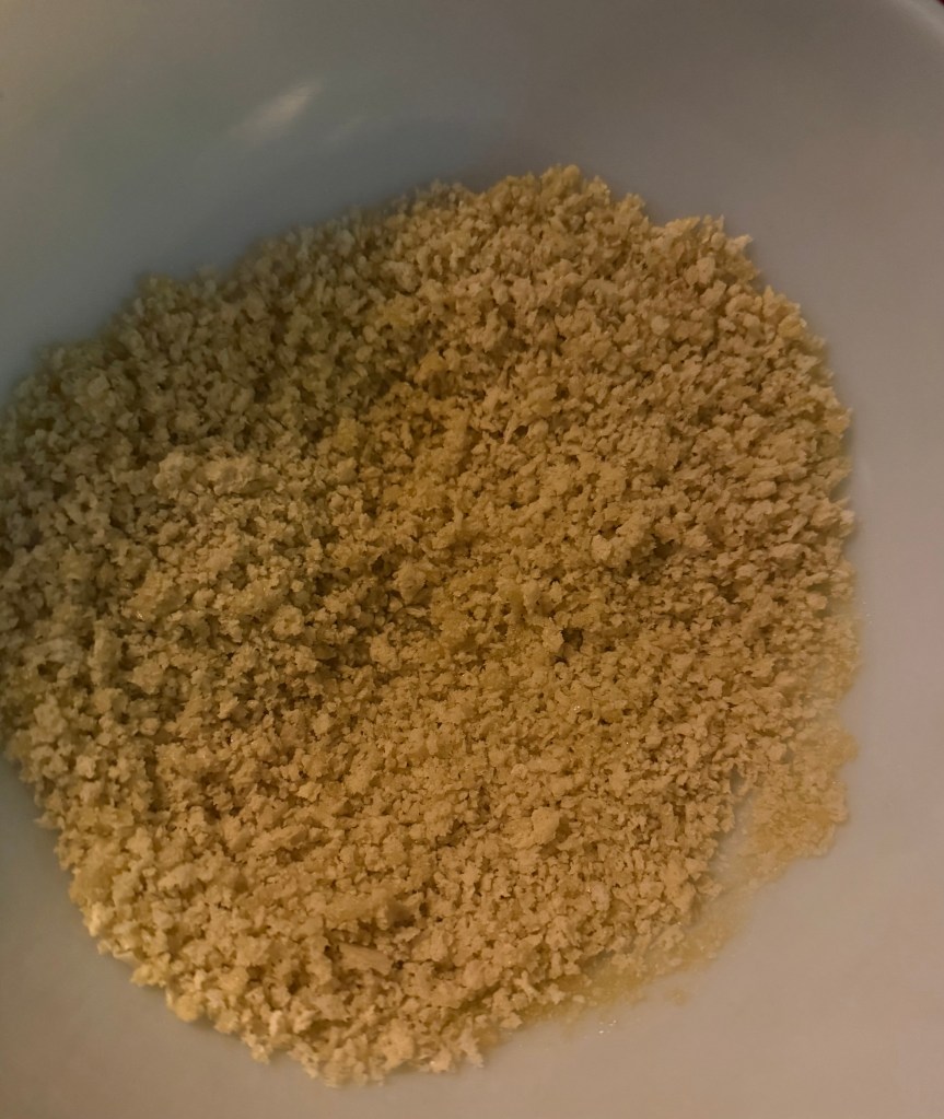 4. In a separate bowl, combine the panko breadcrumbs with olive oil, mixing until the breadcrumbs are evenly coated. If desired, stir in mini marshmallows for added sweetness.