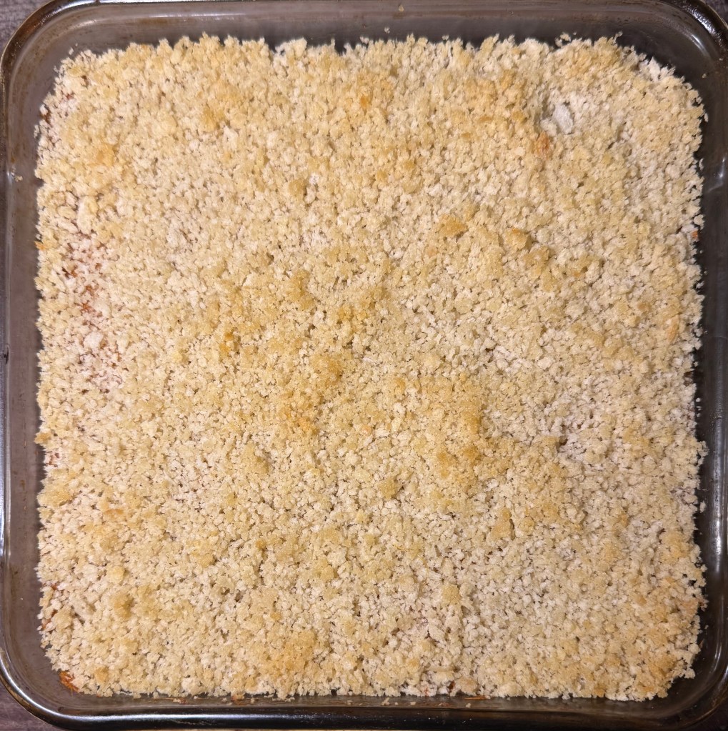 5. Sprinkle the panko mixture evenly over the top of the sweet potato layer.